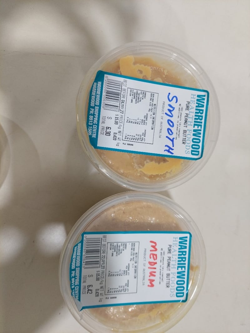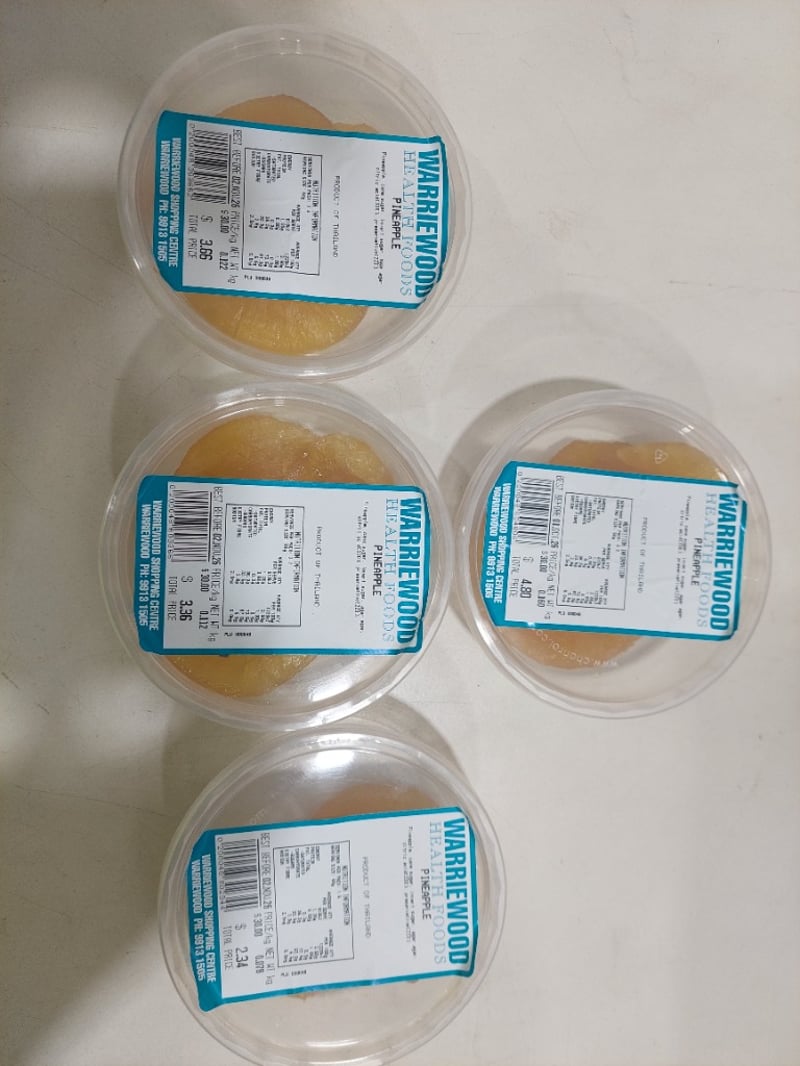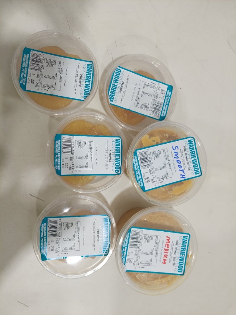 Assorted health and wellness pantry items, including: pineapple and pure peanut butter.