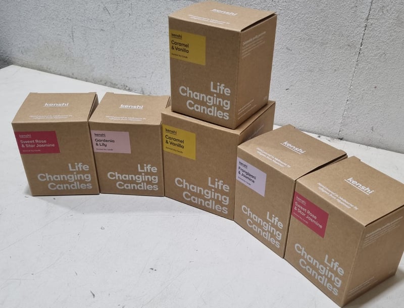 Kenshi Scented Soy Candle lot, assorted scents. Sold as lot