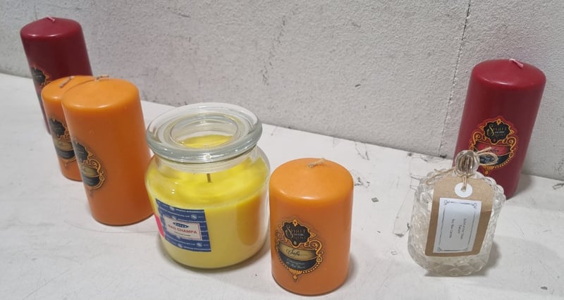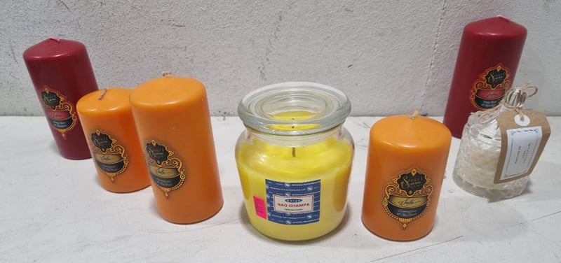 Assorted wax candle lot, includes Spirit of the Orient, Nag Champa and more......Sold as lot