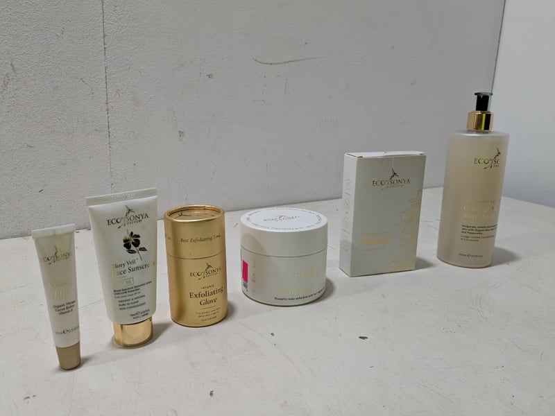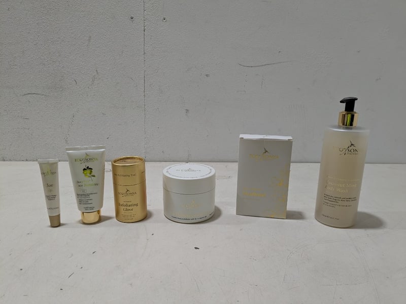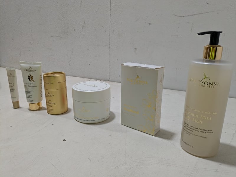 Assorted Eco by Sonia includes, Body exfoliator with lush organic oils, coconut mint body wash and more...Sold as a lot.