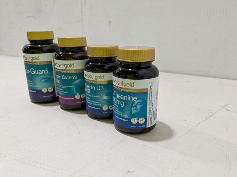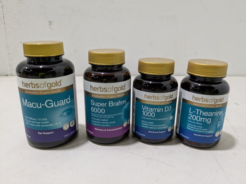 A collection of various health and wellness products, including: Macu-guard, Super Brahmin and more...Sold as a lot.