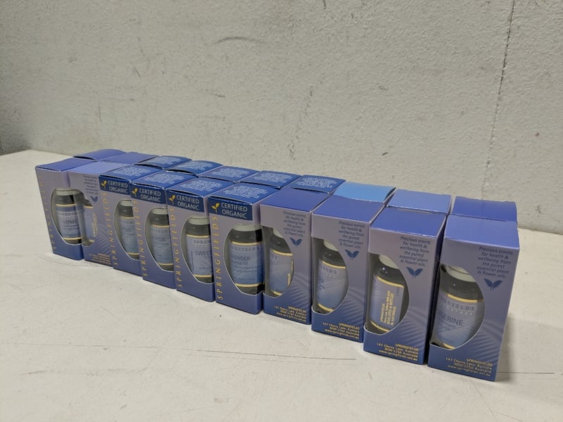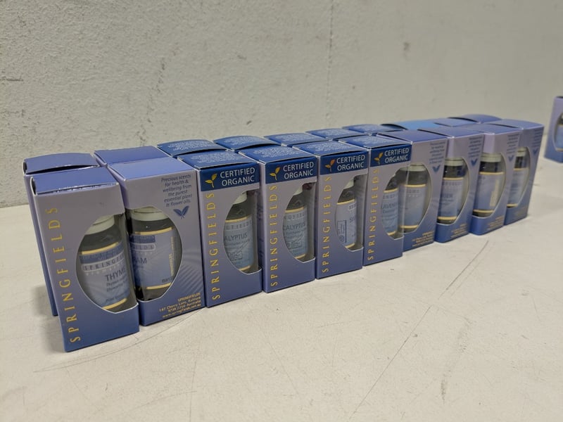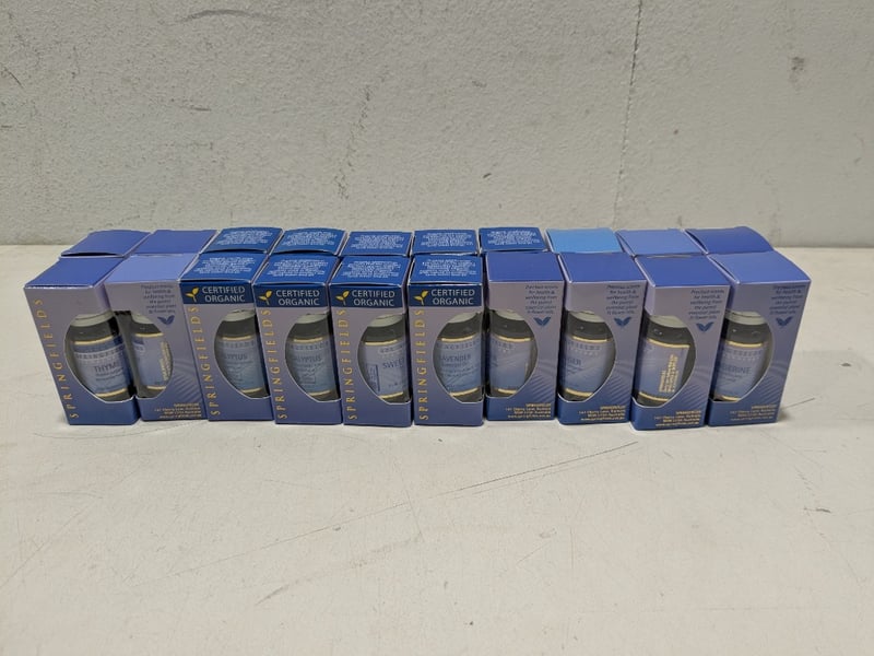 Assorted Springfields pure essential oils includes, thyme, tranquility and more..Sold as a lot.