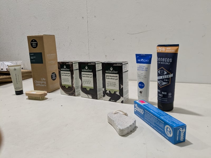 Assorted health and wellness products, including: Permanent hair colour gel, life changing diffusers and more.Sold as a lot.