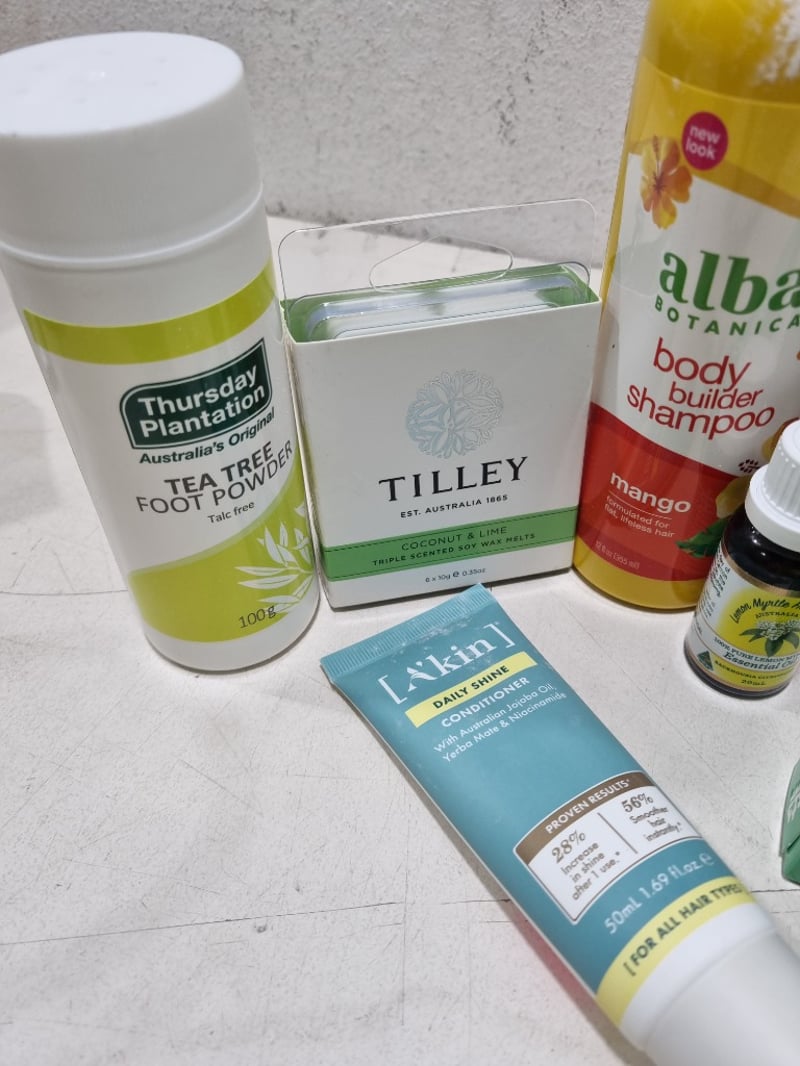 Assorted health and wellness lot, includes Everday coconut conditioner, Tilley coconut and lime soy wax melts and more ...... Sold as lot