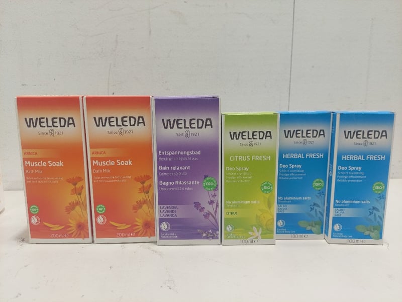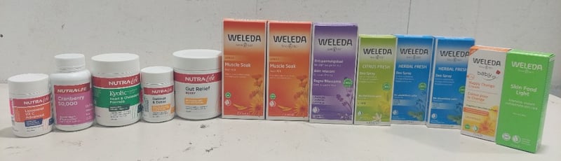Assorted health and wellness items, including: Weleda muscle soak, nappy change cream and more.Sold as a lot.