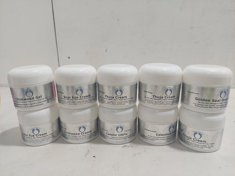 Assorted health and wellness items, including: Simply natural oils golden seal cream,thuja cream and more.Sold as a lot