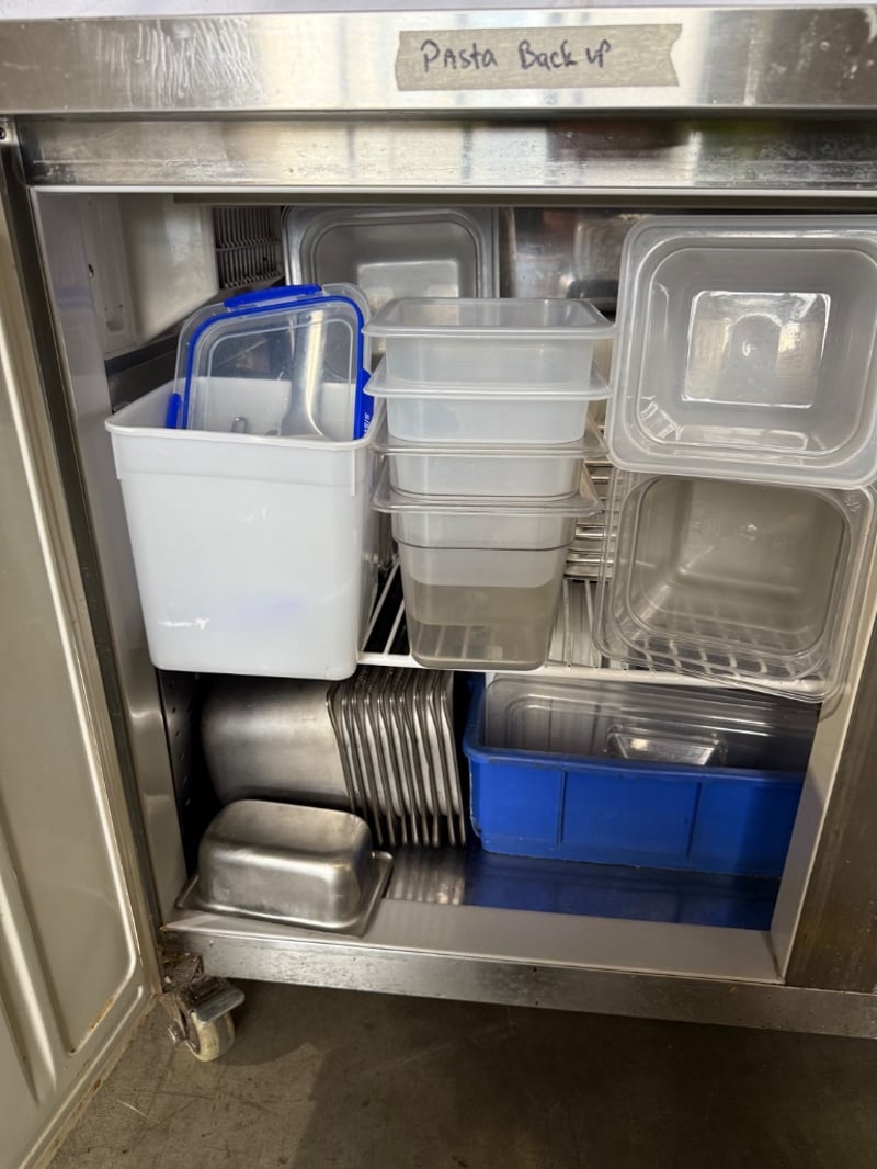 Hoshizaki Commercial 2 Door Counter Refrigerator With Bulk Containers.