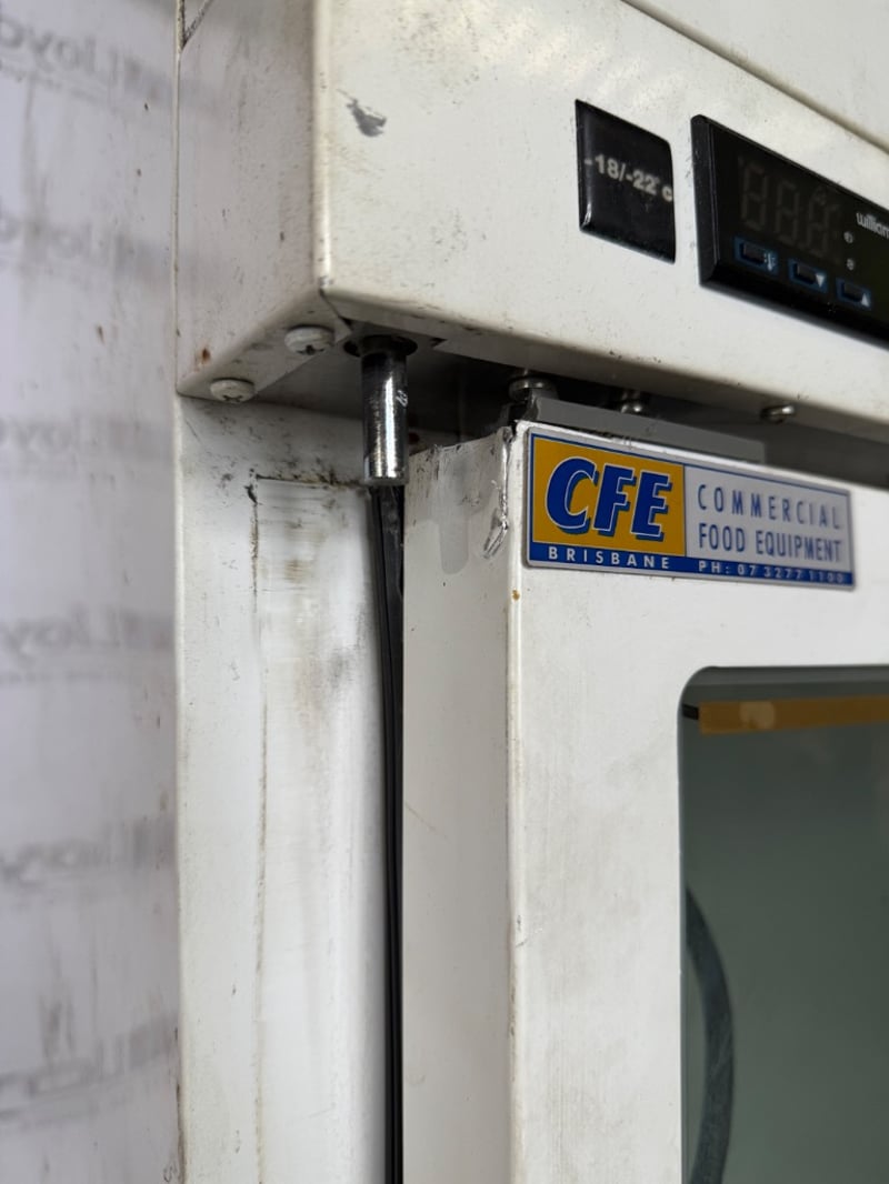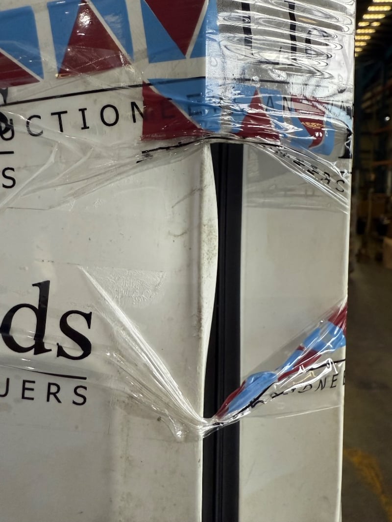 Note: Refrigerator Door Damaged And Not Attached At The Top. Marks And Dents Visible, Working Condition Unknown.