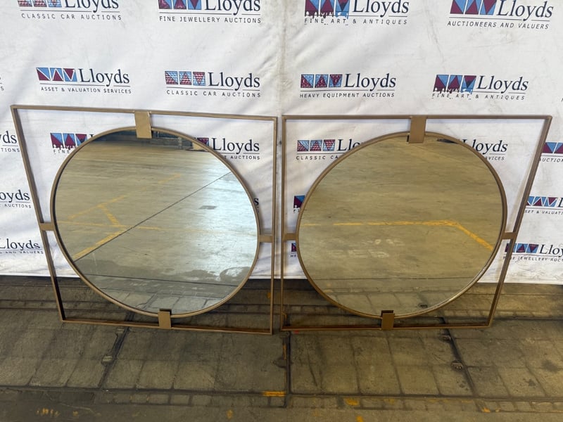 Two Circle Mirrors With Bronze Finish Metal Frame