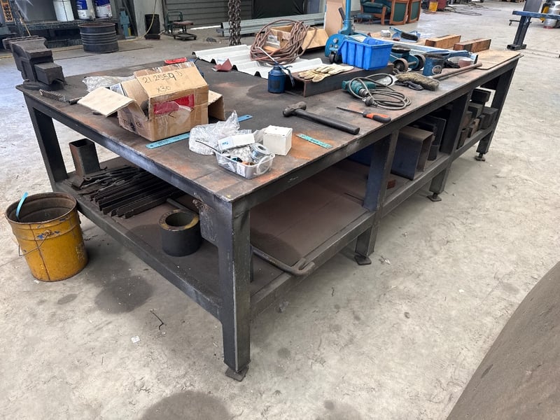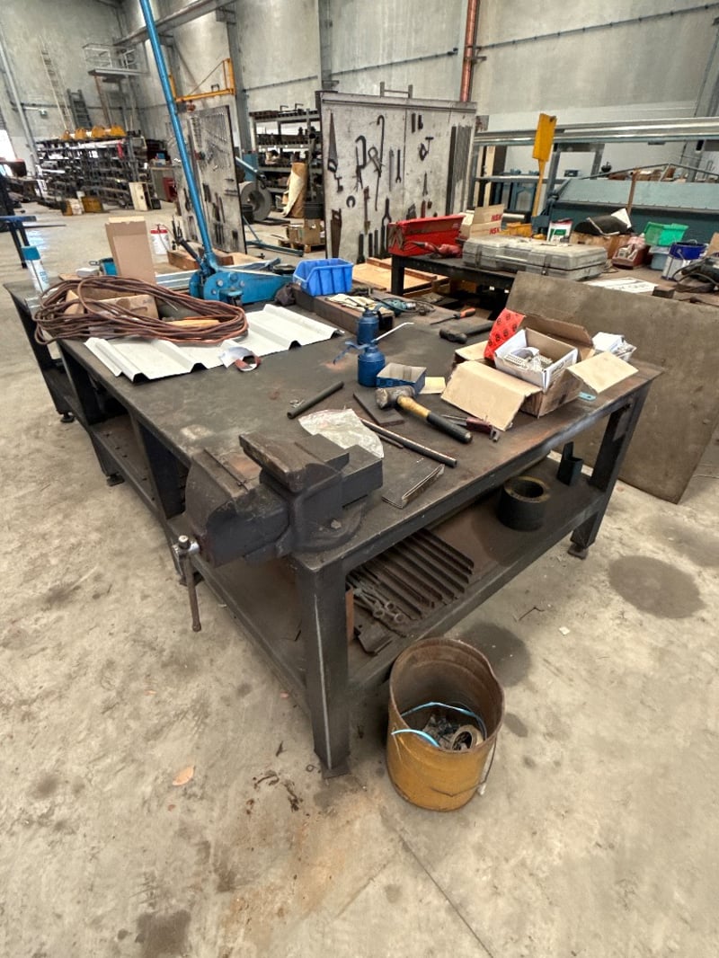 Heavy-Duty Industrial Workbench – Large Steel Table with Storage Shelves
