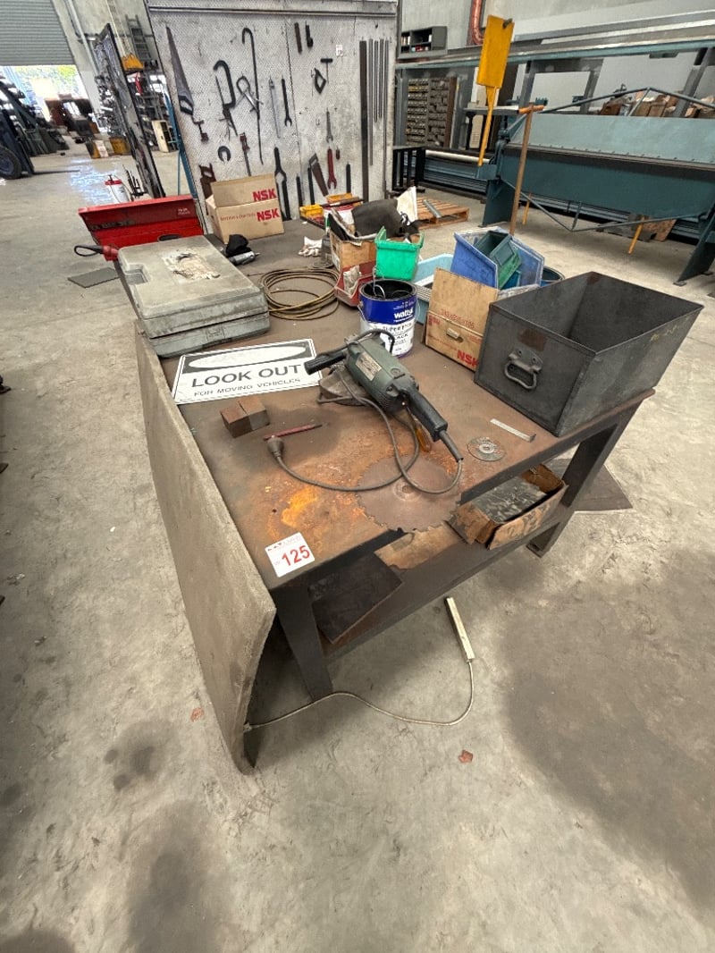 Industrial Workbench – Steel Top, Storage Shelf + Assorted Tools & AccessoriesLocation: Banyo, QLD Collection: Tuesday the 6th to Thursday the 8th of January *** PLEASE NOTE This is a SITE CLOSURE *** Customers MUST sign in on site for inspections and collections and must adhere to the safety guidelines of the site Site safety gear is mandatory for all visitors: this includes a high-visibility top, and steel cap boots. The buyer is fully responsible for the dismantling and decommissioning of any electrical, plumbing and gas components. This work must be carried out by a qualified tradesperson. Buyers must provide their own tools, labor, lifting equipment, and transport to ensure the safe removal of the asset. If required, the buyer must organize a crane or Franna at their own expense. All contractors must carry current insurance and comply with Occupational Health and Safety (OHS) regulations. After asset removal, the site must be left clean and tidy. Inspection is highly recommended prior to purchase and removal