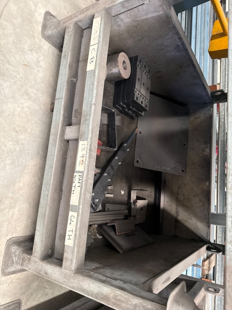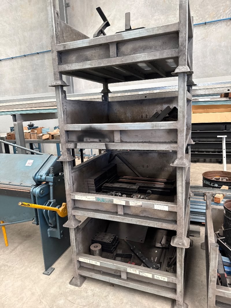 Steel Stillages – Heavy-Duty Stackable Bins (4 Units) + Steel Components