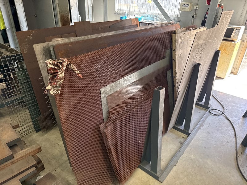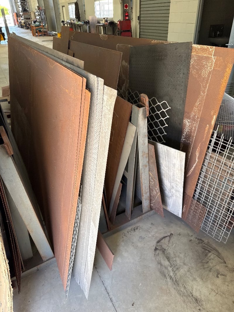 Assorted Steel Sheets & Mesh – Mixed Sizes – Sheet Rack Included