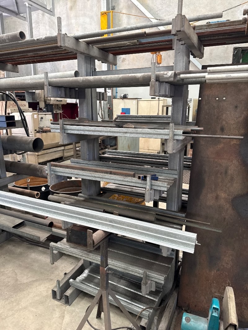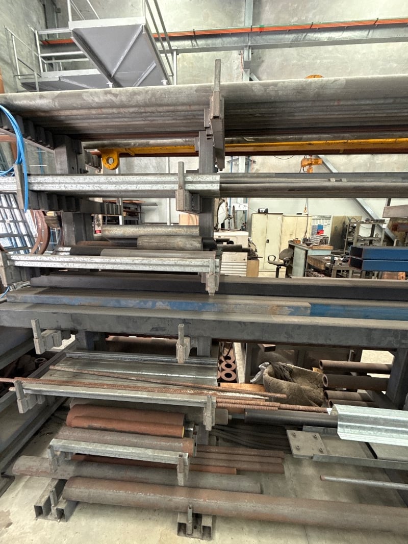 • Heavy-duty steel racking system (multi-tier, freestanding).