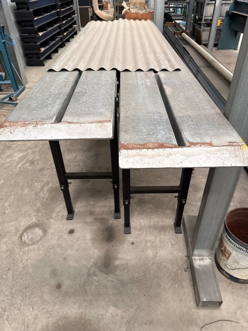 Metal Sawhorses + Galvanised Sheeting Table Setup