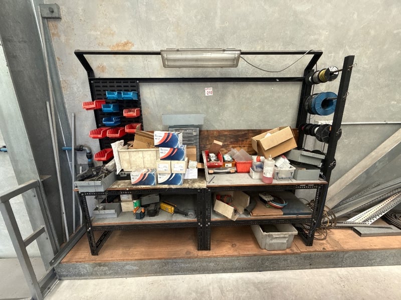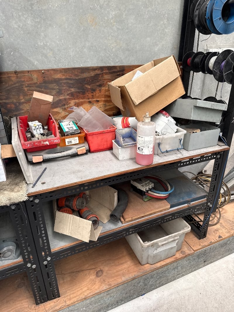 Workbench With Overhead Frame + Parts StorageSolid industrial workstation setup with plenty of built-in organisation.Includes: • Heavy-duty steel workbench (2-bay width) • Overhead frame with integrated lighting • Side spool rack for wire/cable rolls • Pegboard panel with assorted clip-on parts bins • Lower storage shelf • Assorted electrical parts, boxes, and trays included as shownLocation: Banyo, QLD Collection: Tuesday the 6th to Thursday the 8th of January *** PLEASE NOTE This is a SITE CLOSURE *** Customers MUST sign in on site for inspections and collections and must adhere to the safety guidelines of the site Site safety gear is mandatory for all visitors: this includes a high-visibility top, and steel cap boots. The buyer is fully responsible for the dismantling and decommissioning of any electrical, plumbing and gas components. This work must be carried out by a qualified tradesperson. Buyers must provide their own tools, labor, lifting equipment, and transport to ensure the safe removal of the asset. If required, the buyer must organize a crane or Franna at their own expense. All contractors must carry current insurance and comply with Occupational Health and Safety (OHS) regulations. After asset removal, the site must be left clean and tidy. Inspection is highly recommended prior to purchase and removal