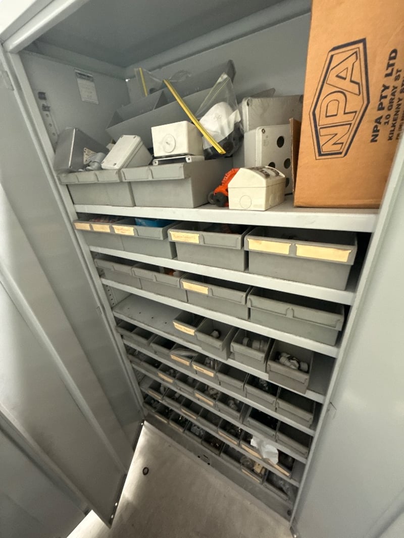 3 x filing Cabinets, With Flexi cable an electrical hard wares, Switches, Joining Strips plugs and sockets, push buttons and so much more