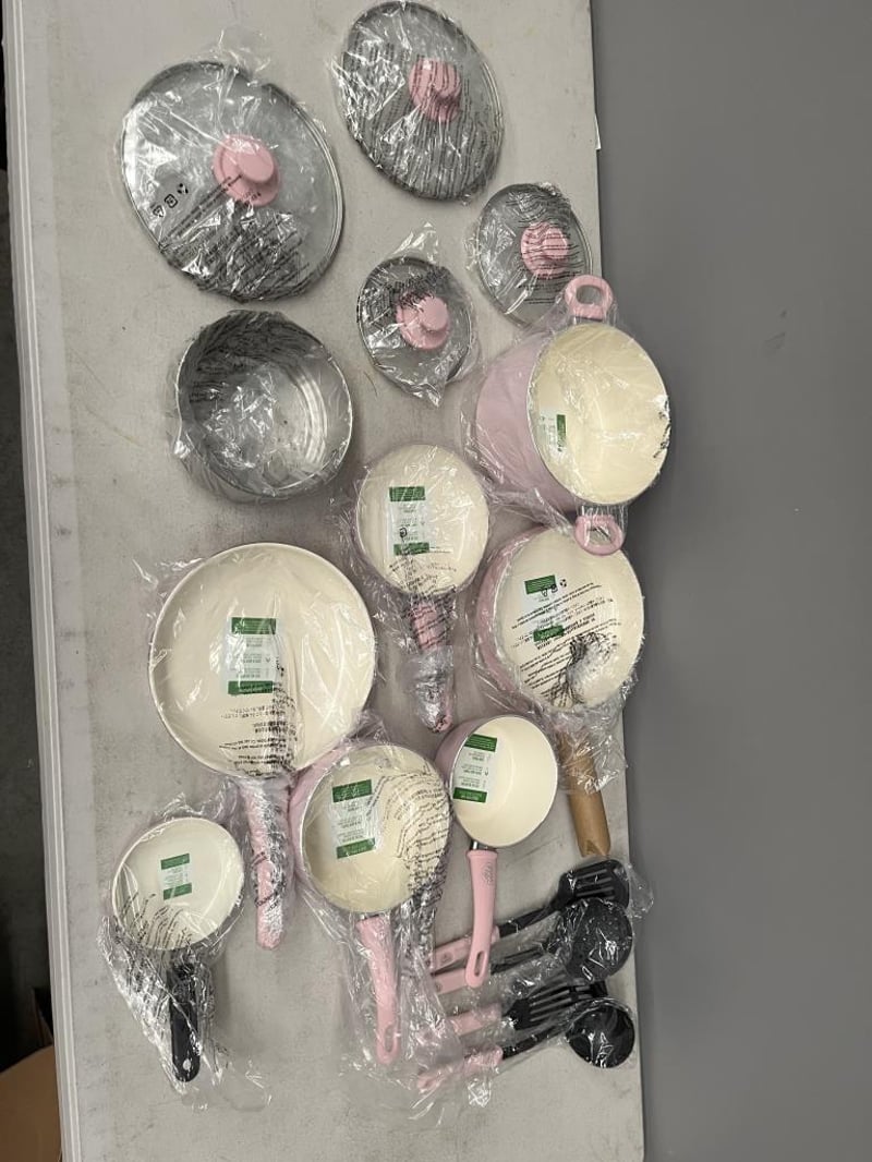 RRP $249 GreenLife Soft Grip Healthy Ceramic Nonstick 16 pc Cookware Pots and Pans Set - Soft Pink - REFURBISHED WORKING AS NEW CONDITION