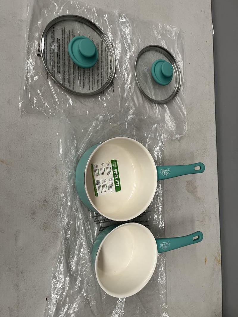RRP $199 GreenLife Soft Grip Healthy Ceramic Nonstick 1QT and 2QT Saucepan Pot Set with Lids - Turquoise - REFURBISHED WORKING AS NEW CONDITION