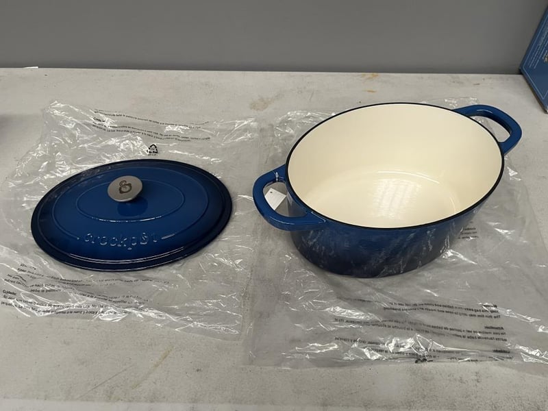 RRP $189 Crock Pot Artisan Enameled Cast Iron 7-Quart Oval Dutch Oven - Sapphire Blue - RETAIL RETURN UNUSED PRISTINE CONDITION