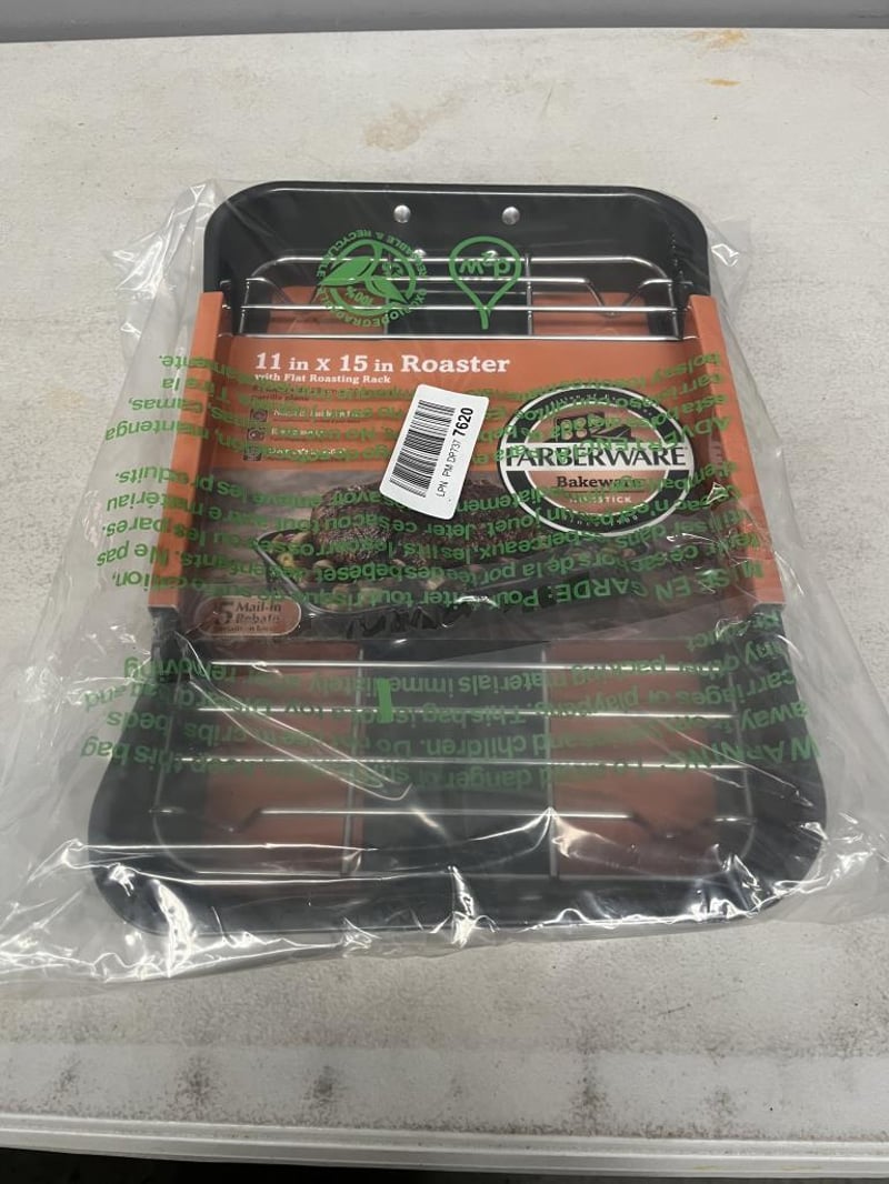 Farberware Nonstick Bakeware 11-Inch x 15-Inch Roaster with Flat Rack - Grey - RETAIL RETURN UNUSED PRISTINE CONDITION