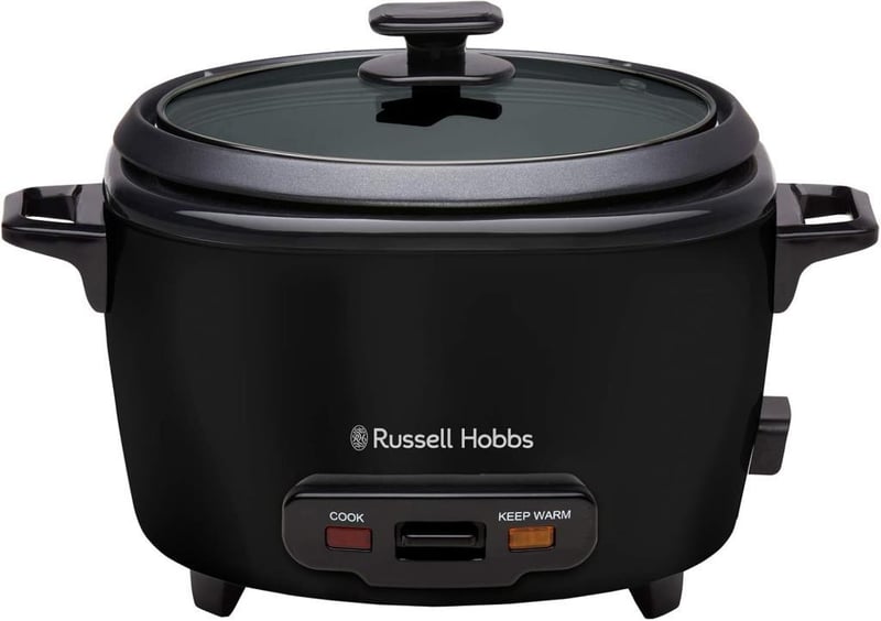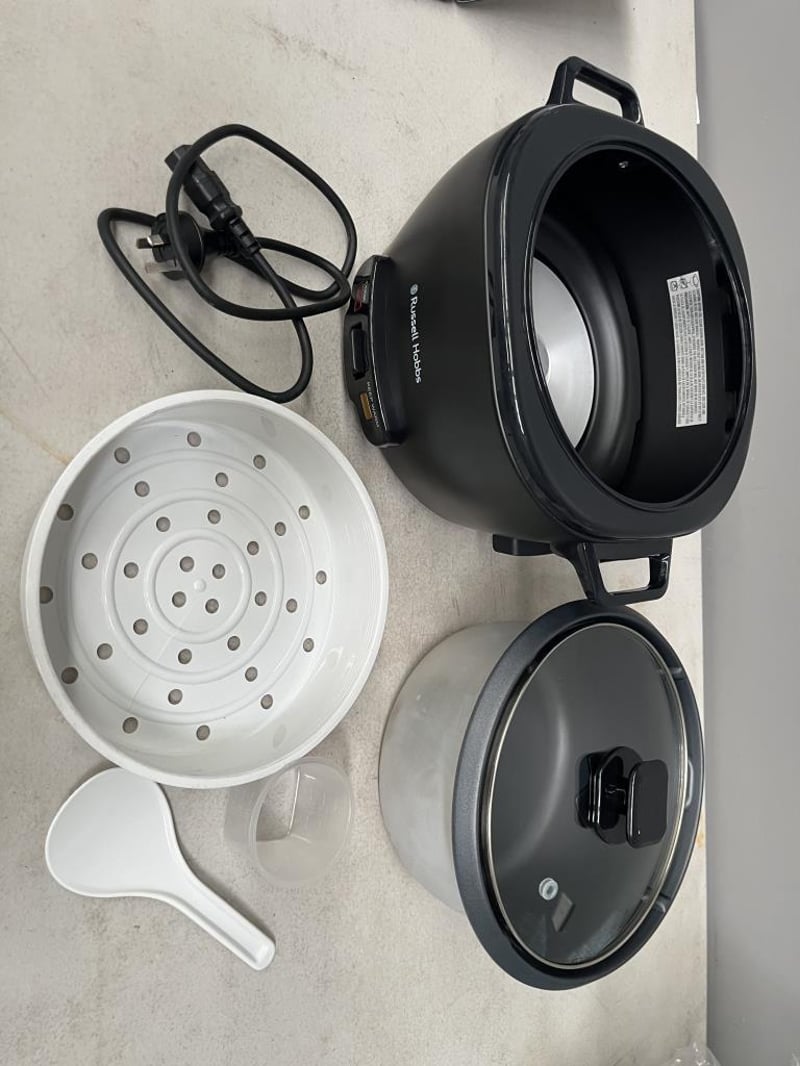 Russell Hobbs Turbo Rice Cooker (RHRC20BLK) 10 Cup Uncooked Rice Capacity - Matte Black - REFURBISHED WORKING VERY GOOD CONDITION (NOTE: MINOR DAMAGE STEAMER BASKET CRACKED REFER TO PHOTO (NO BOX))