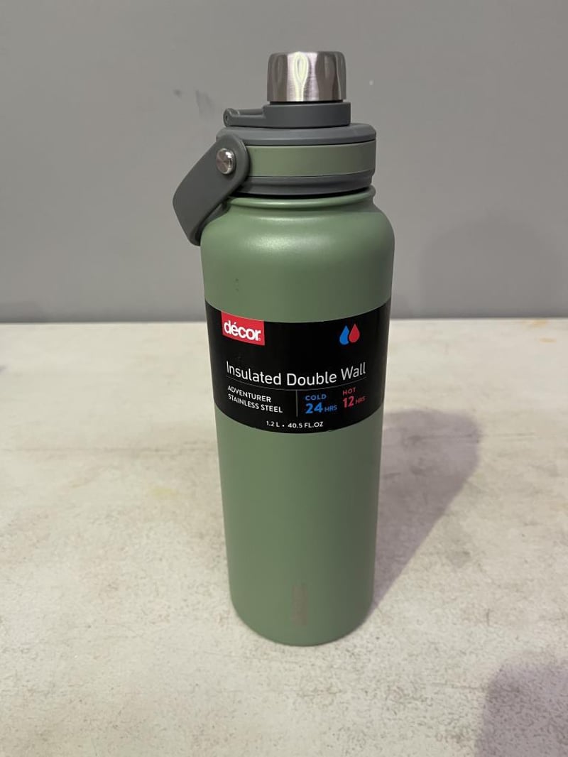 Décor Adventurer Insulated Stainless Steel Double Wall Bottl 1.2 Litre Capacity - Green - RETAIL RETURN UNUSED PRISTINE CONDITION