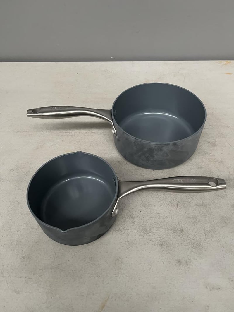 RRP $129 GreenPan Lima Hard Anodized Healthy Ceramic Nonstick 1QT and 2QT Saucepan Pot Set - Grey - REFURBISHED WORKING EXCELLENT CONDITION (NO BOX)