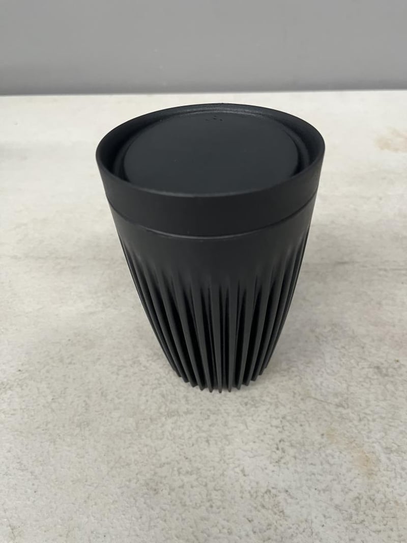 HUSKEE Coffee Cups with Lids - Reusable Coffee Cup with Unique Fins 12oz - Charcoal - RETAIL RETURN UNUSED PRISTINE CONDITION