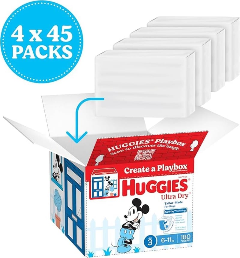 Huggies Ultra Dry Nappies Boys Size 3 (6 - 11kg) 180 Pack - RETAIL RETURN UNUSED PRISTINE CONDITION