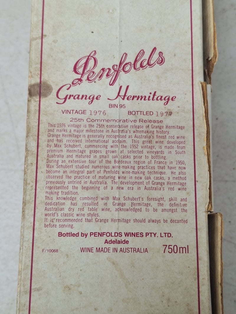 1976 Penfolds Grange Hermitage Bin 95 750mL, 25th Commemorative Release