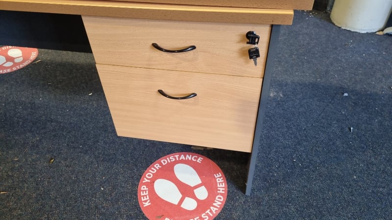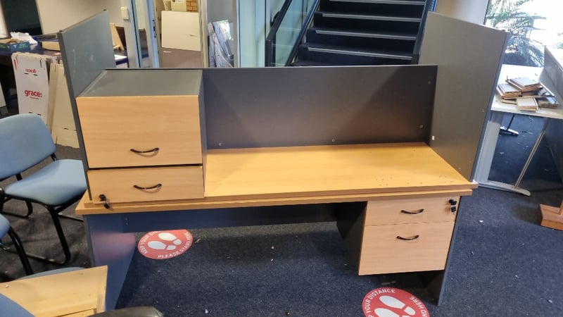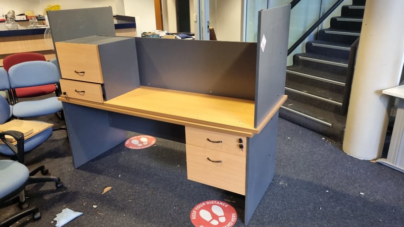 Office desks with 2x locking DrawersDimensions 73cmH x 177cmW x 75cmDQty 2xSOLD as Lot