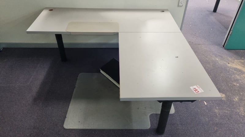 Manual Height adjustable Corner Office Desk 3 drawerDesk Dimensions 75cmH x 180cmW x 172cmDSold as Lot