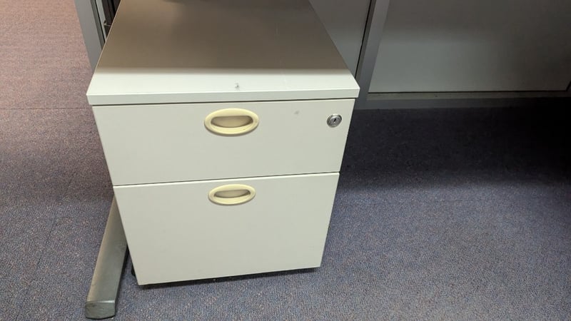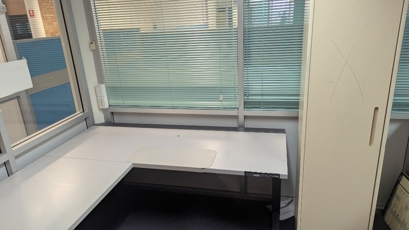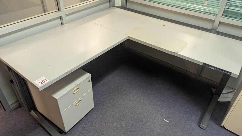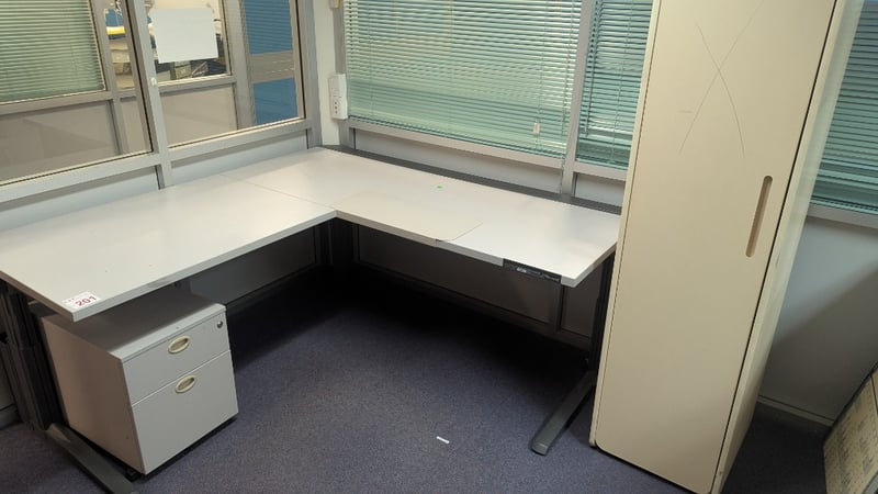 Adjustable Corner Office Desk, Small 2 Drawer Cabinet, Cupboard with 3 Shelves and Hanging Space, Dimensions (Desk) 75cm(H)×180cm(W)×180cm(D), Quantity 3