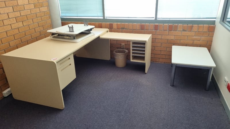 Corner Office Desk With 2x Drawers, Desk Raiser and Coffee table