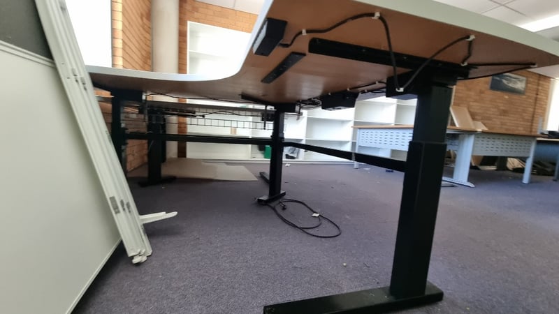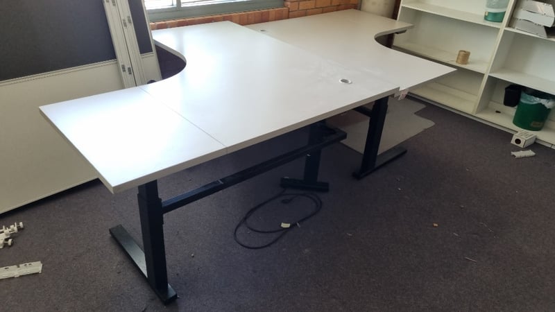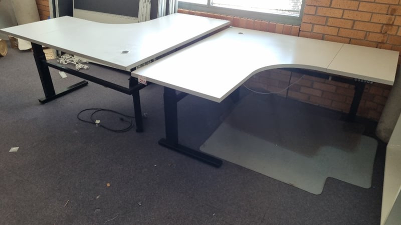Corner Office Desks Electric height AdjustableQty 2x desks Desk Dimensions 72cmH x 165cmW x 165cmDSold as Lot