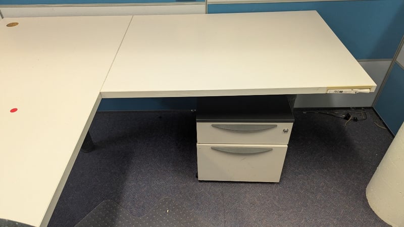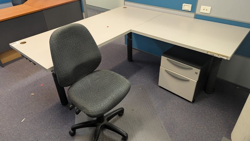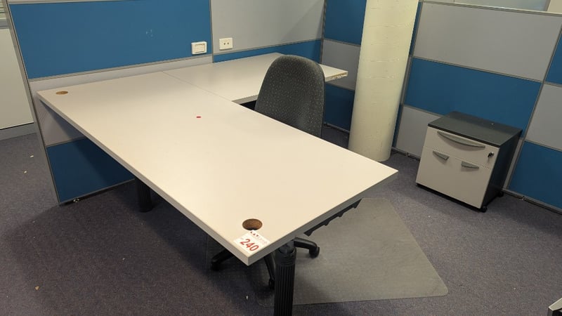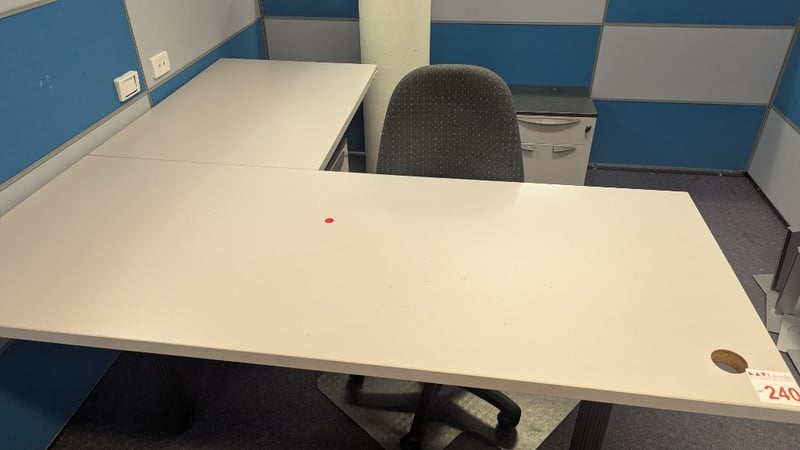 Adjustable Office Desk, 2 × 2 Drawer Units, Swivel Chair, Dimensions 75cm(H)×180cm(W)×180cm(D), 50cm(H)×37cm(W)×40cm(D), Quantity 4