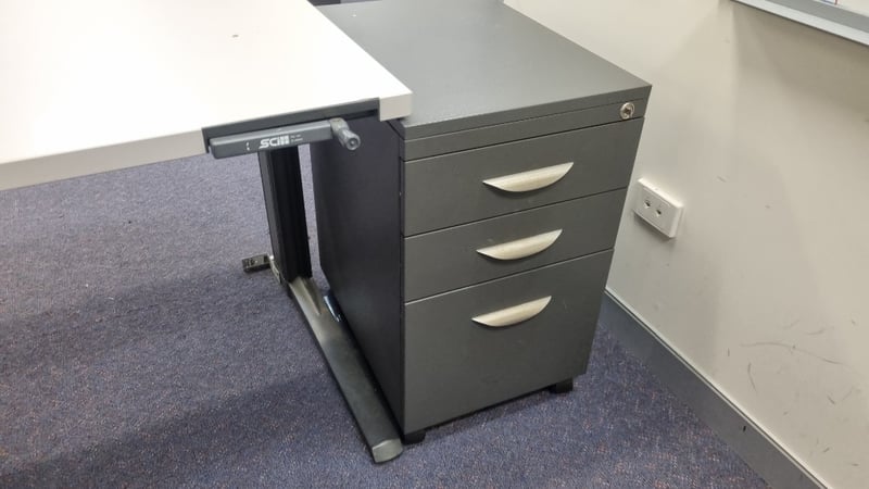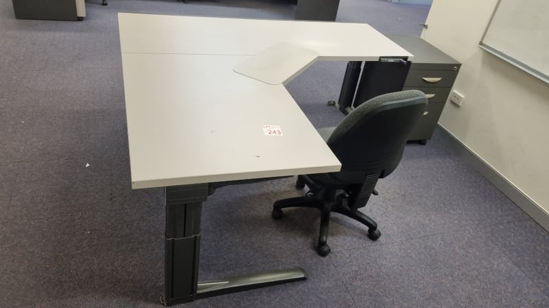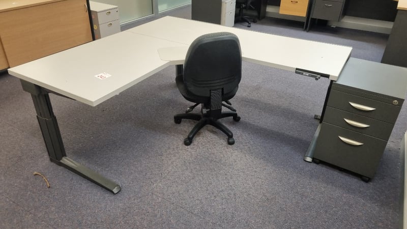 Corner Office Desk With chair and Drawers, Manual Height adjustable Desk Dimensions 72cmH x 150cmW x 150cmDSold as Lot
