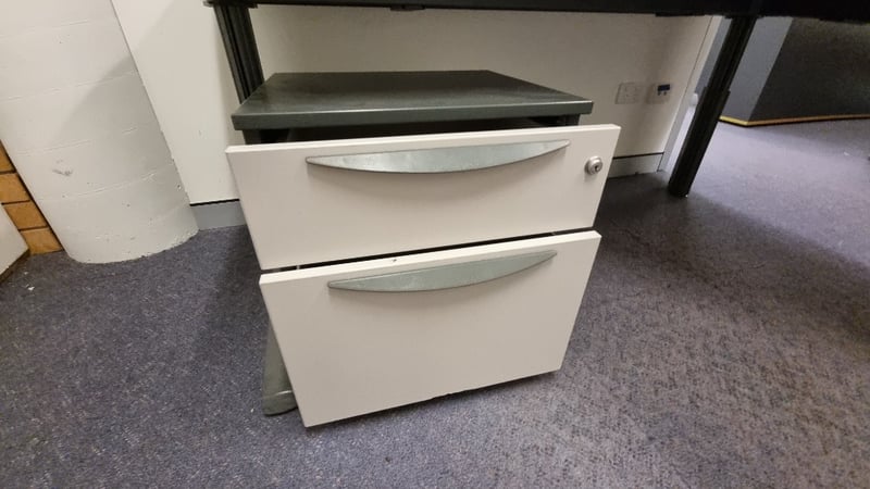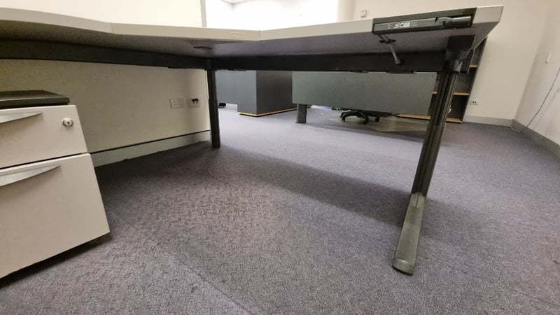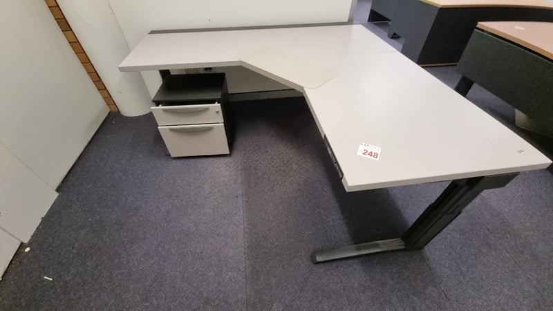 Corner Office Desk adjustable height and Under Desk DrawersDesk Dimensions 72cmH x 210cmW x 180cmDSold as Lot