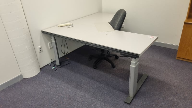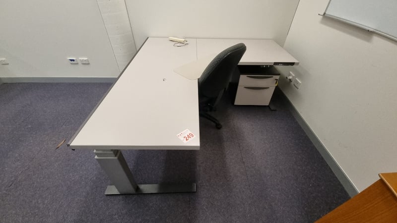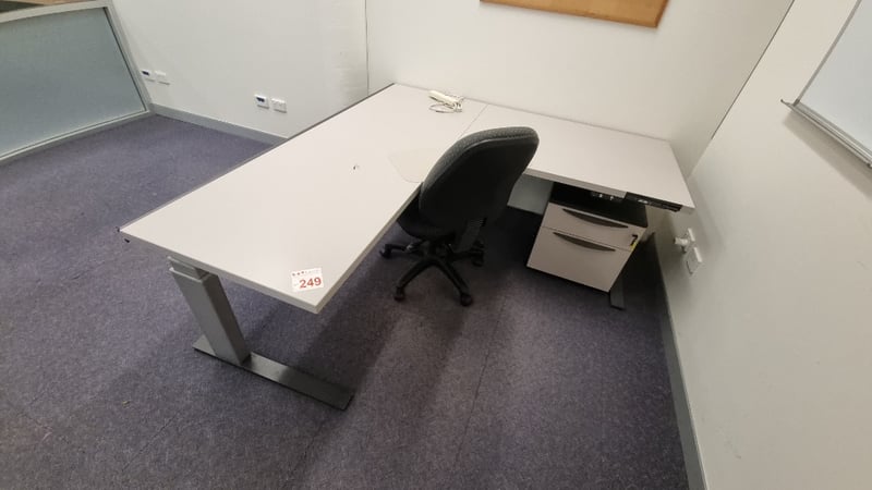 Corner Office Desk Height Adjustable, Chair And Drawers