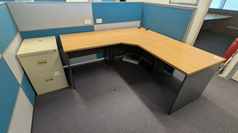 Corner Office Desk, 2 Drawer Filing Cabinet, Foot Rest, Dimensions 73cm(H)×180xm(W)×180cm(D)