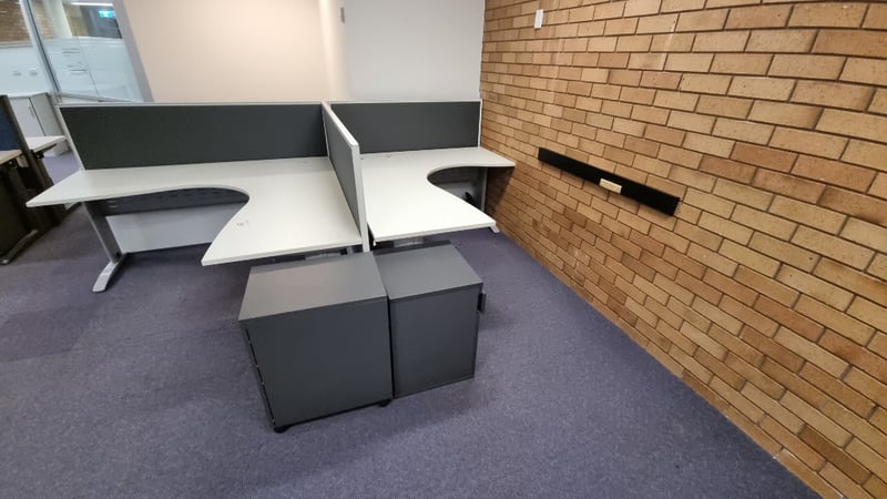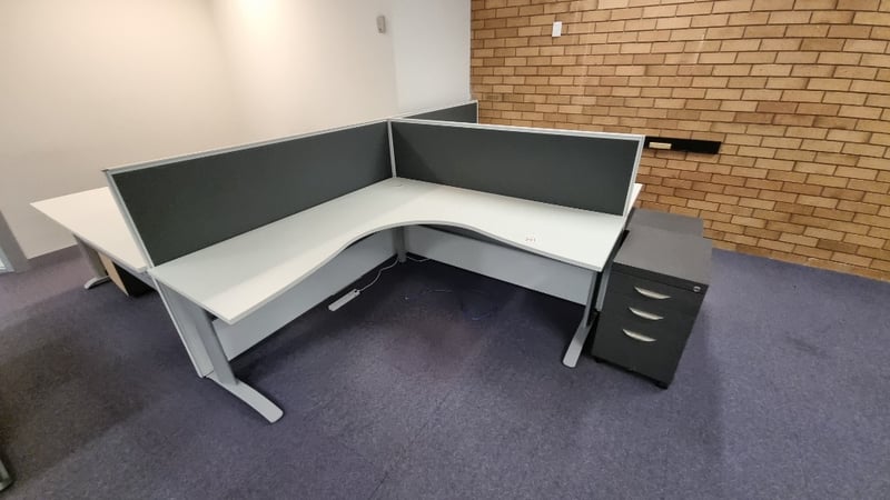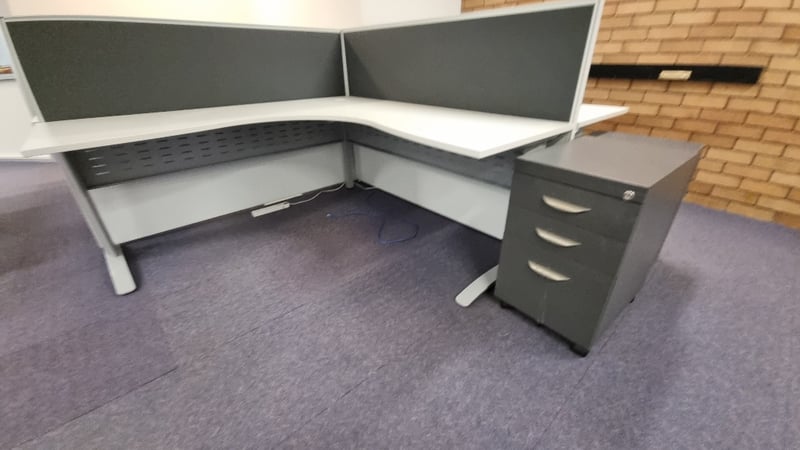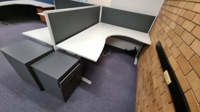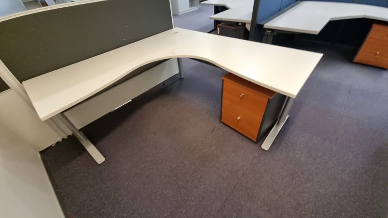 Office Combo, Includes 3x Corner Desks, 3x underdesk Drawers, and 3 Partition walls