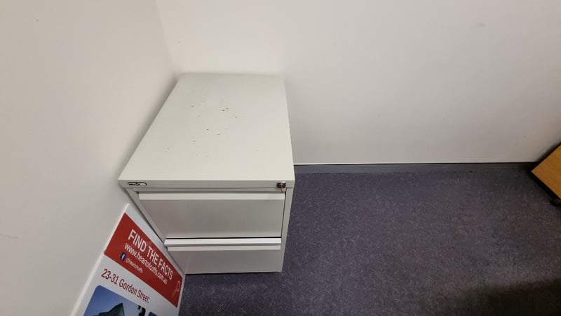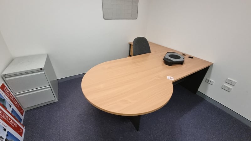 Corner Office Desk With Under Desk Drawers And ChairDimensions 73cmH x 210cmD x 180cmWSOLD as Lot - Buyer to Provide Safe removal of Asset