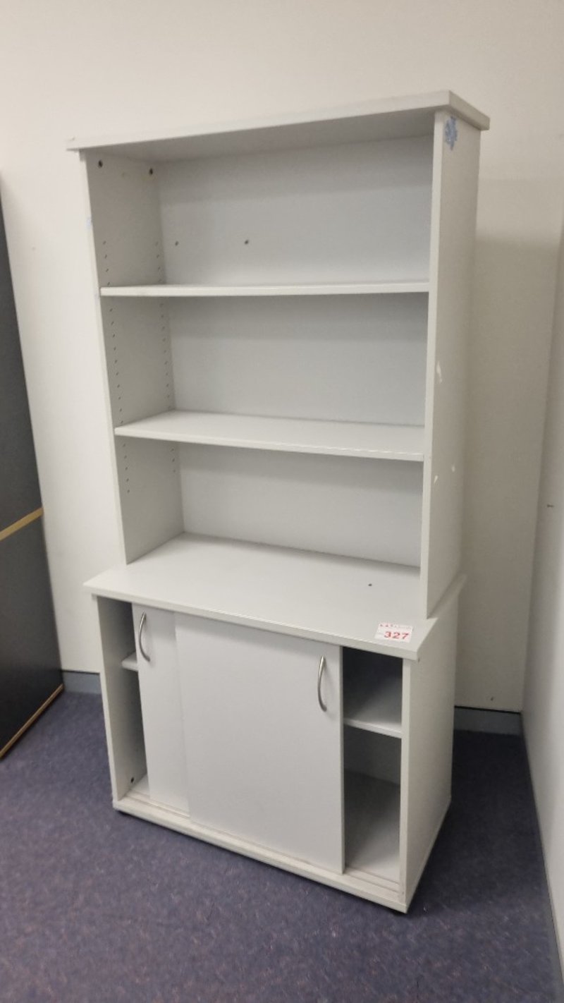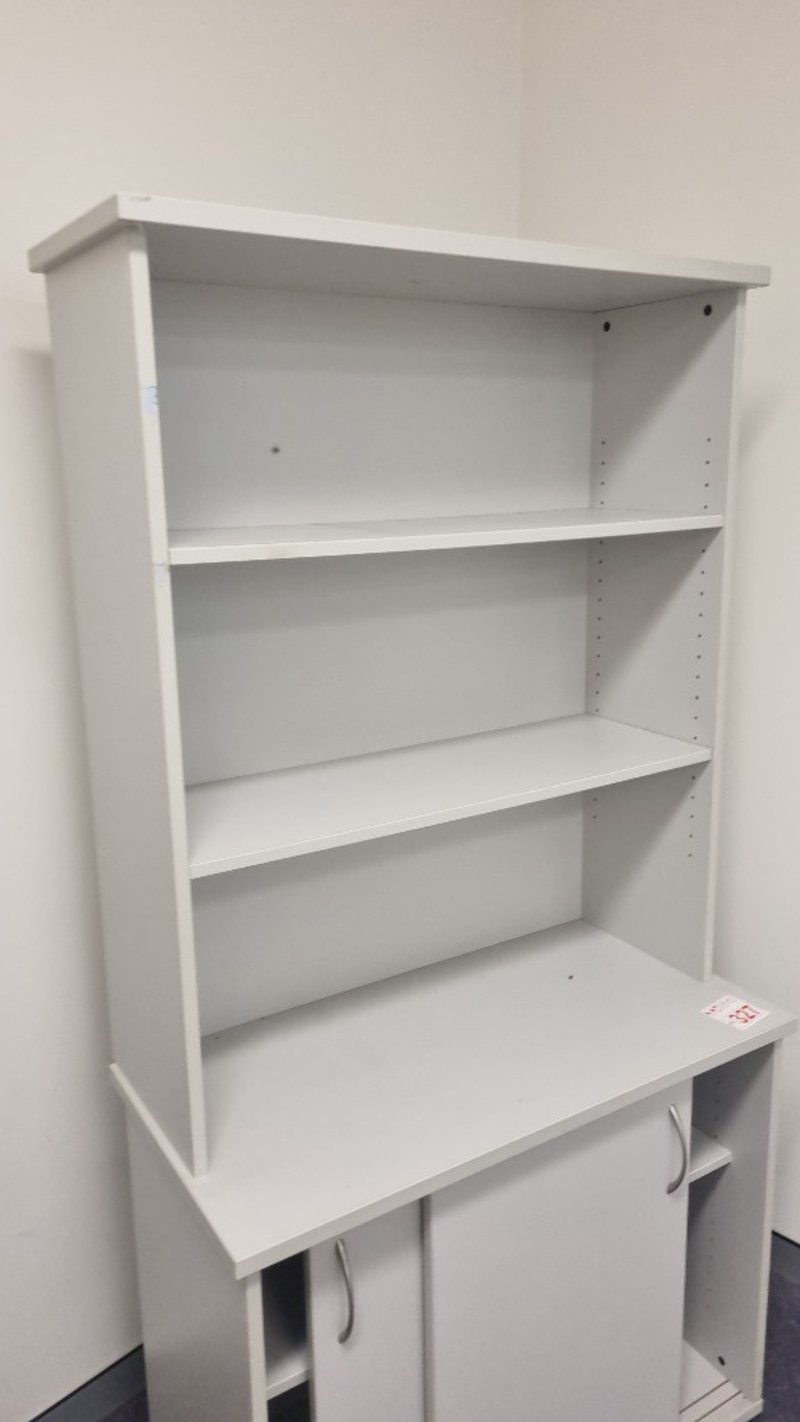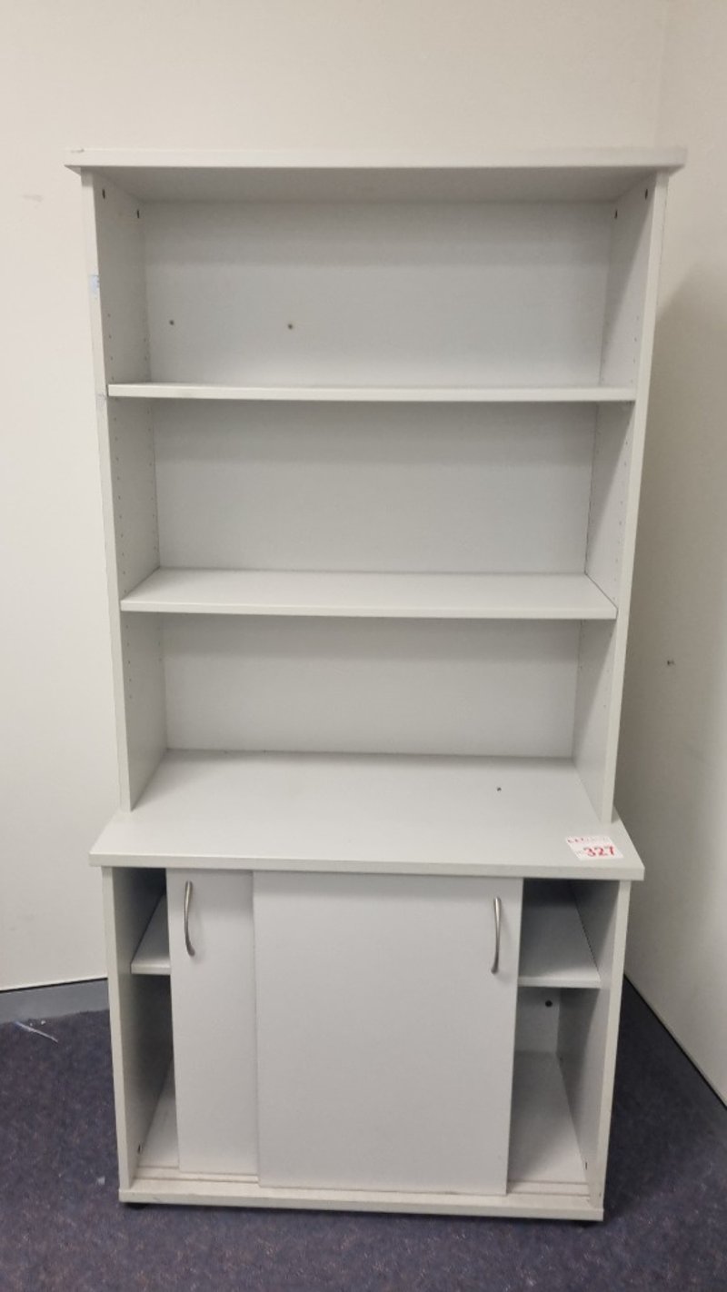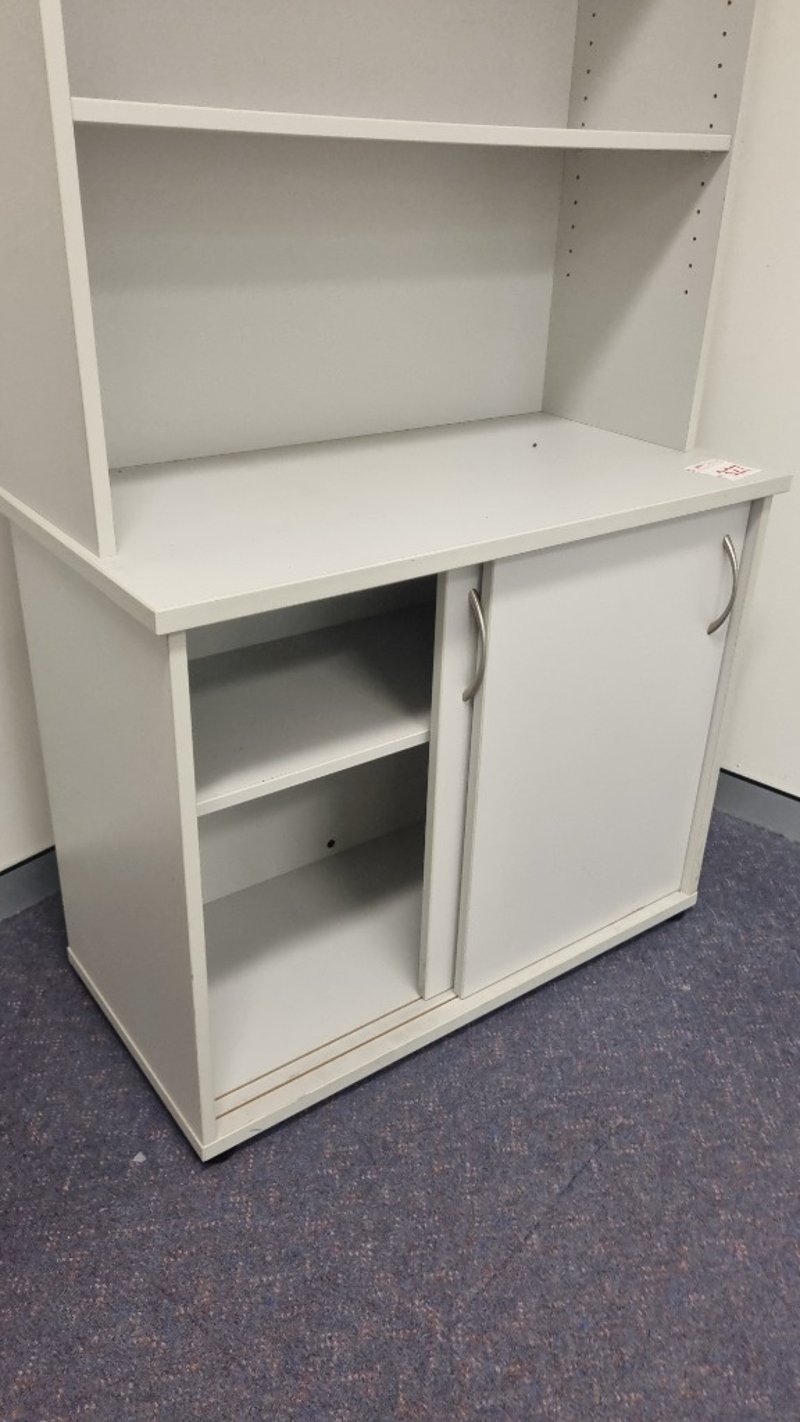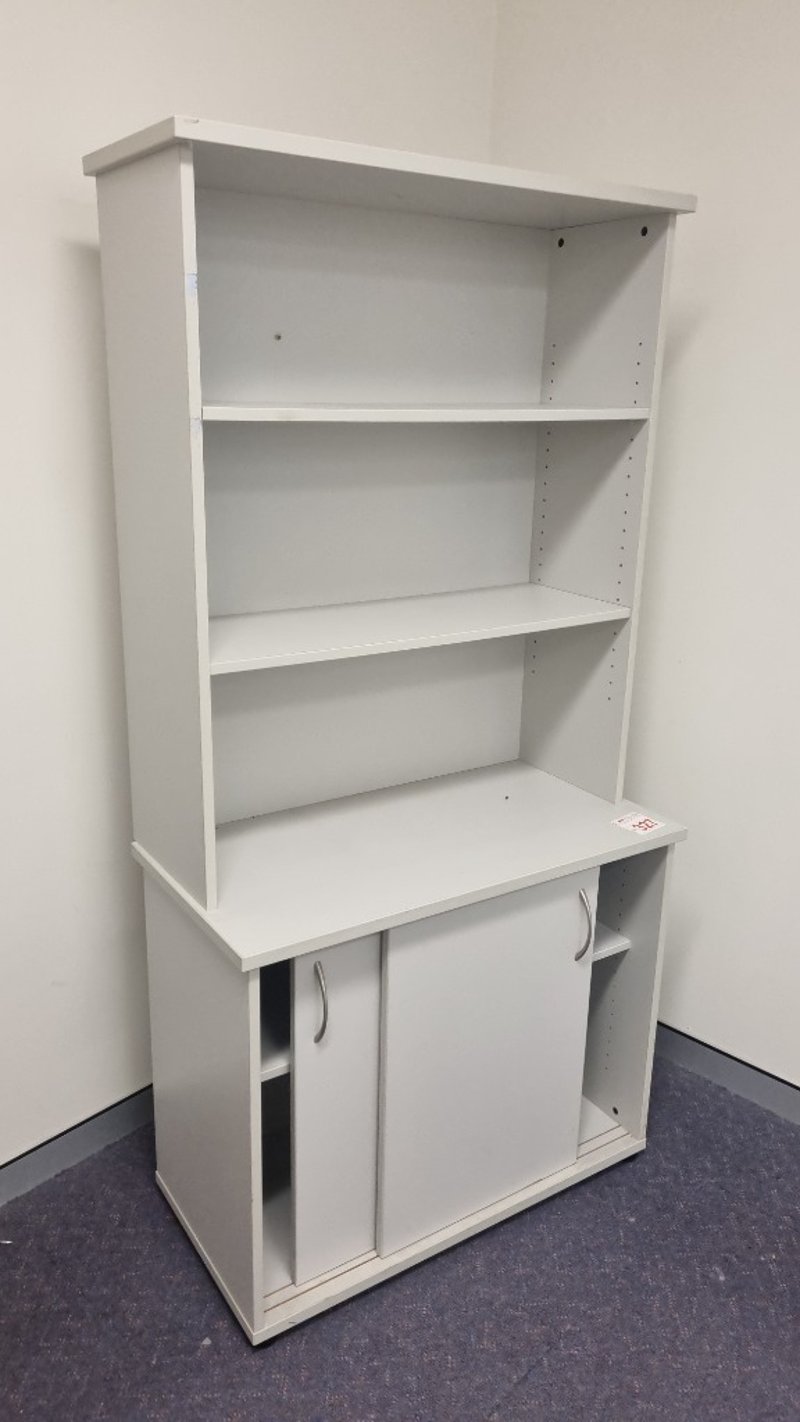 Storage Cabinet Grey With Sliding doorsDimensions 180cmH x 90cmW x 46cmDSOLD as Lot - Buyer to Provide Safe removal of Asset
