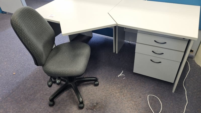 Corner Office Desk With adjustable Keyboard Platform , Includes Chair And Underdesk Drawers
