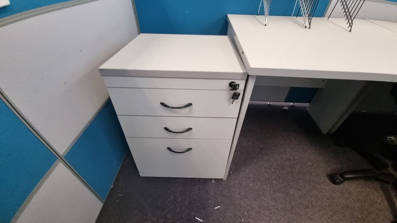 Corner Shaped 3 Piece Office Desk Includes, underdesk Drawers,and 2 Office Chairs