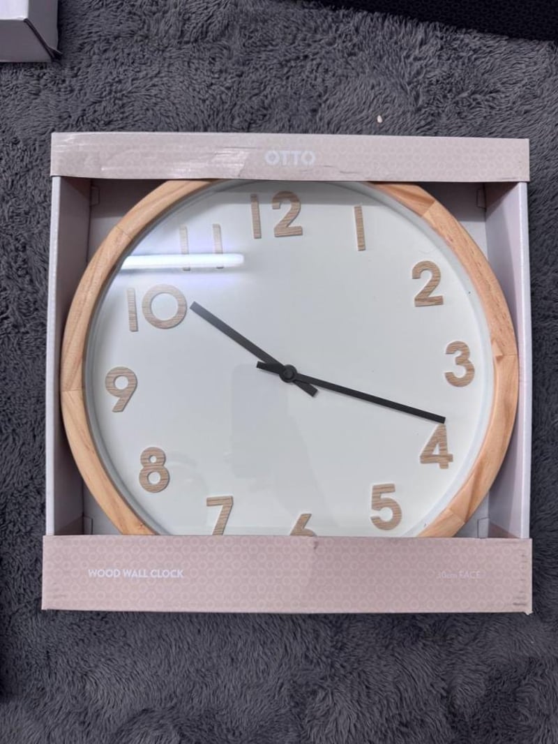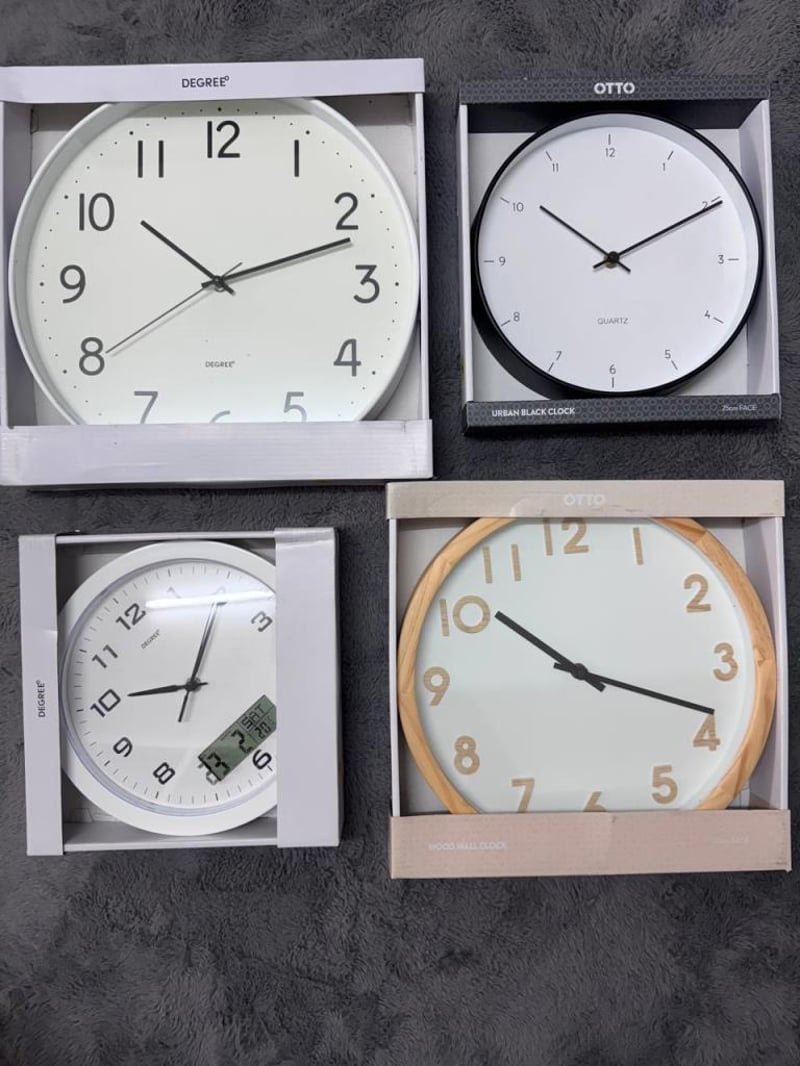 WALL CLOCK-White big size Brand of DEGREE-White small size Brand of DEGREE and digital – black brand of otto and brown brand of otto-sold as lot PRR: White big size Brand of DEGREE 35$-White small size Brand of DEGREE 45$-black brand of otto 25$-brown brand of otto 29$