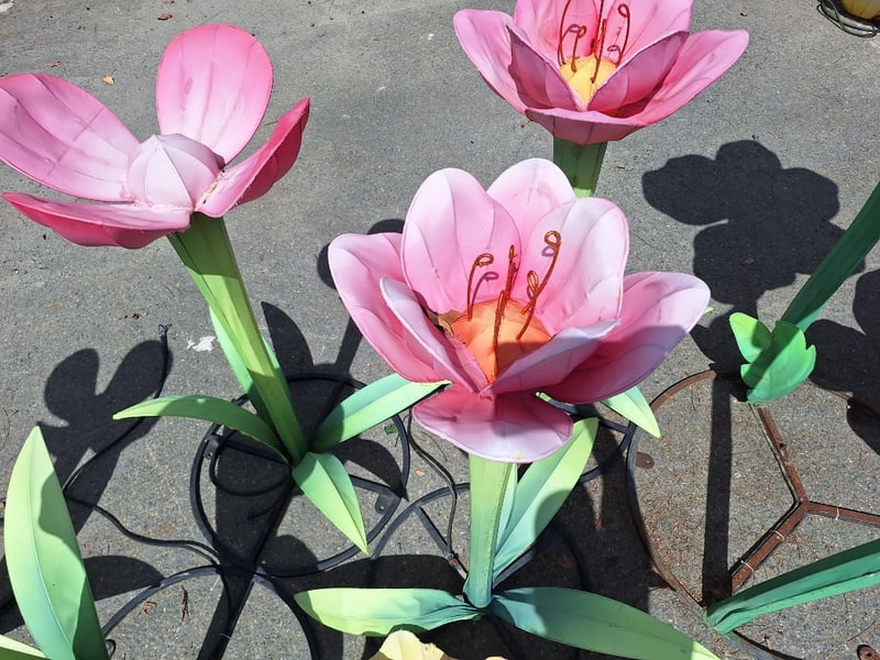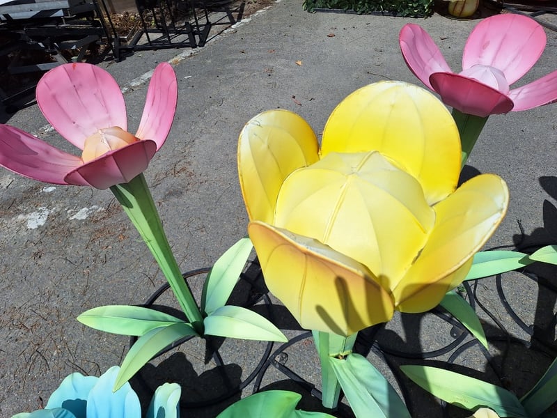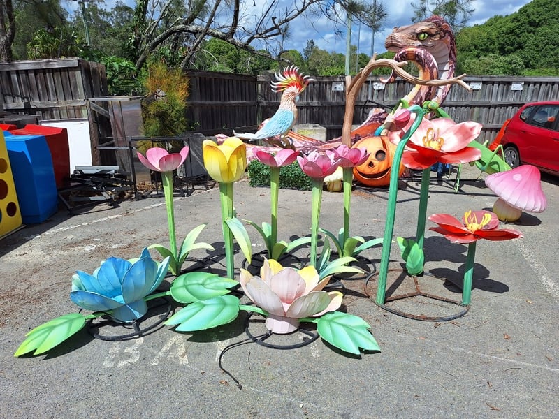 Assorted Flowers x8Metal Frame, material outerDimensions Smallest: H 50cm x W 160cm x D 74cmDimensions Largest: H 140cm x W 82cm x D 82cmSOLD AS LOT