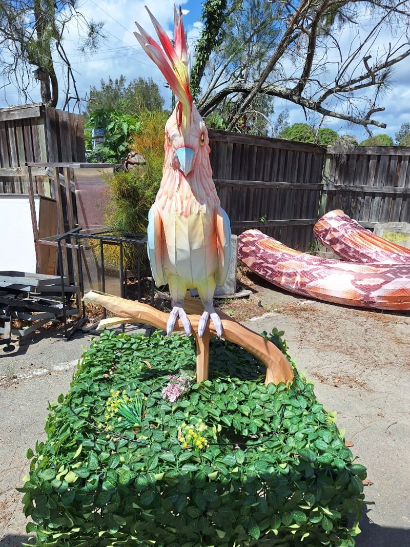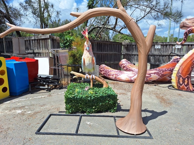 Decorative Galah & Tree Branch Metal Frame, material outerDimensions Galah: H 200cm x W 120cm x D 120cm Dimensions Branch: H 220cm x W 200cm x 70cmSOLD AS LOT