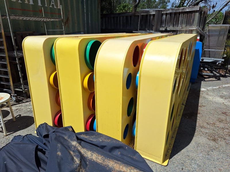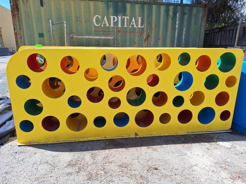 Event Storage WallMulti coloured holes of various sizesDimensions: H 120cm x W 30cm x D 300cmBID PER EACH